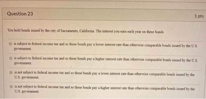 Solved Question 23 1 Pts You Hold Bonds Issued By The City Chegg Com